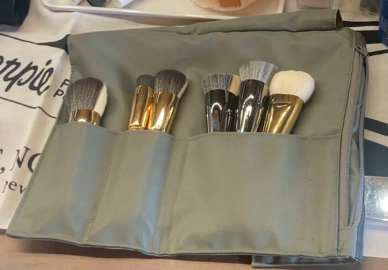 スポンジで部分的に薄く調整することもありますが、こちらの2種類の混合ブラシでは白い毛のほうで余分なファンデーションを吸収するのでスポンジの役割もしてくれます。