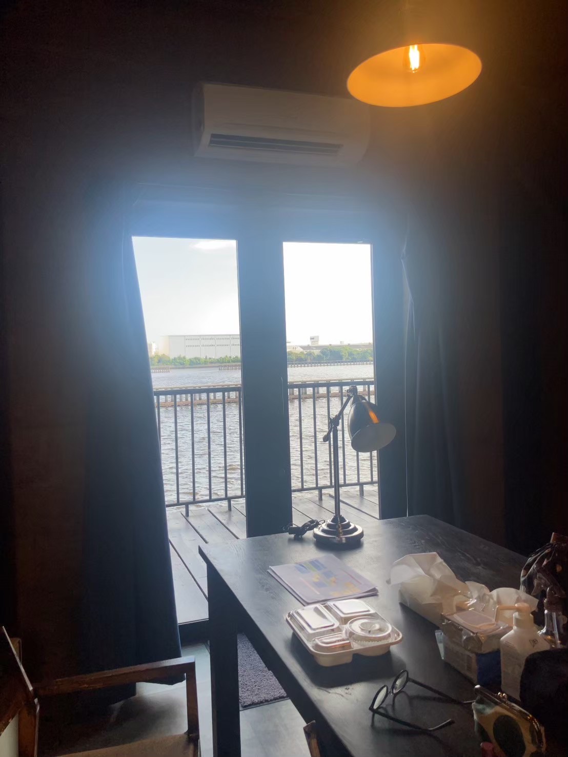運河に囲まれているので待ち時間にはデッキに出て景色を眺めるスタッフさんもいます。