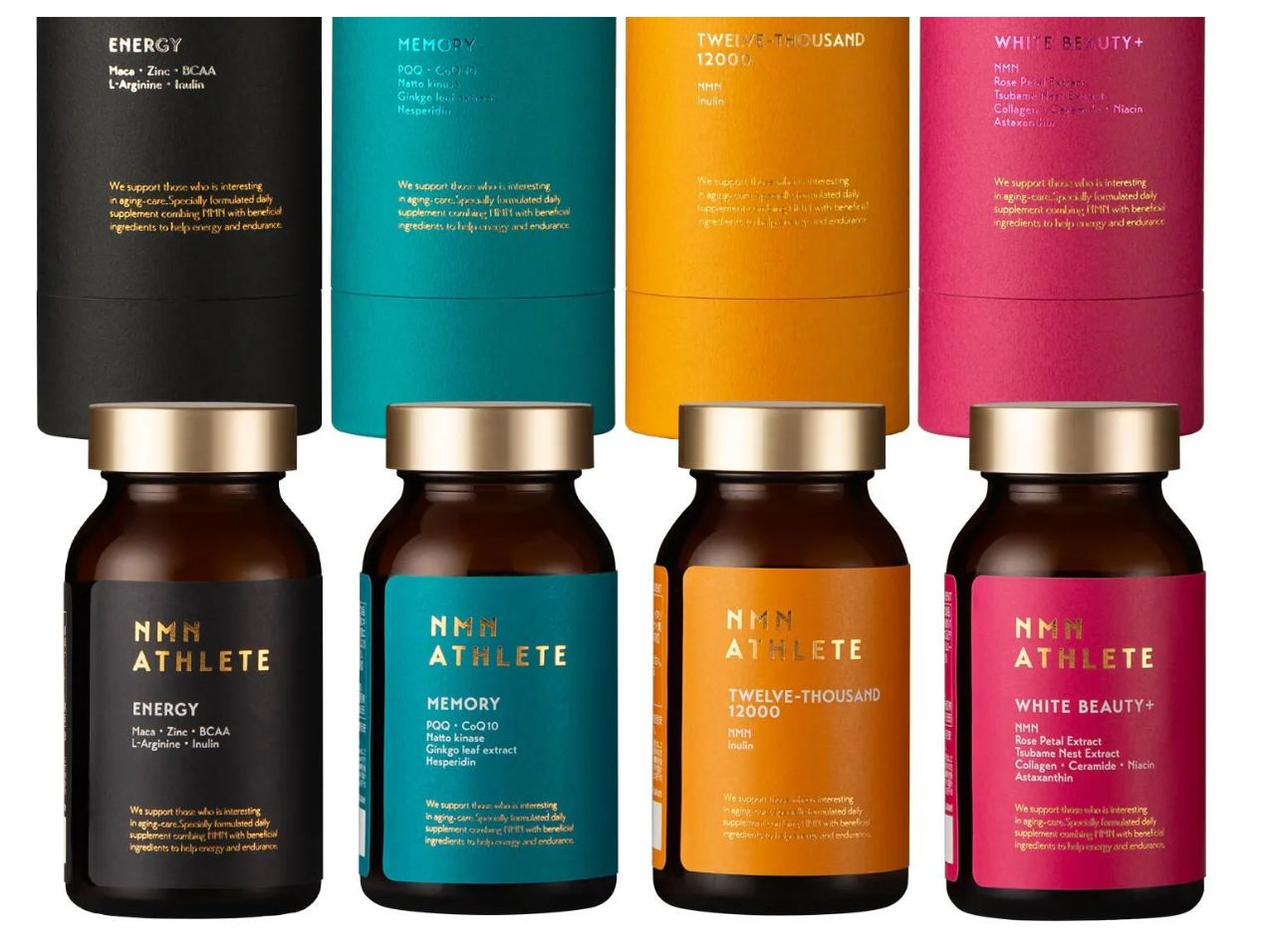 NMN ATHLETEは、単にNMNを配合するだけでなく、ユーザーの「目的」に合わせたサポート成分を独自配合しています。